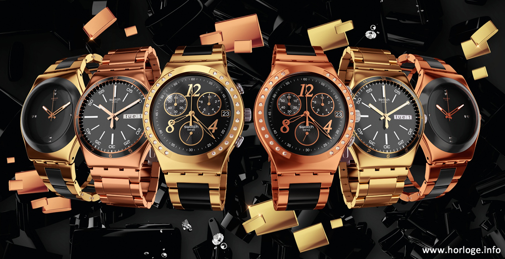 De ‘Night Glows‘ collectie van Swatch is speciaal ontworpen voor de mensen die van chique modefeestje naar idem gaan, lijkt het wel. Toch doet de serie, bestaande uit zes variaties op de Irony-horloges, het in elke situatie goed. De drie modellen zijn verkrijgbaar in roze-goud en geel-goud en vallen eigenlijk te categoriseren van minimalistisch tot zeer uitgebreid.